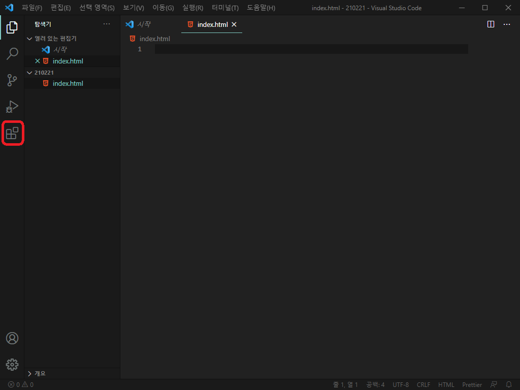 Visual Studio Code를 열어