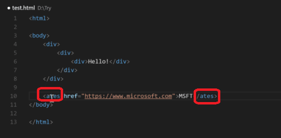 여는 태그나 닫는 태그 중 하나를 수정하면 나머지 태그를 자동으로 수정해준다.