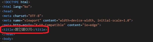 HTML <title> 태그 속에 텍스트가 웹사이트 제목이 되는데,