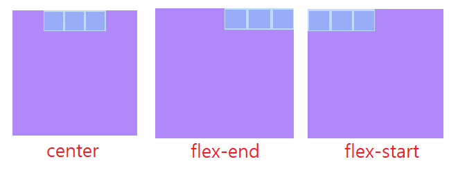 종류로는 center, flex-start, flex-end가 있다.