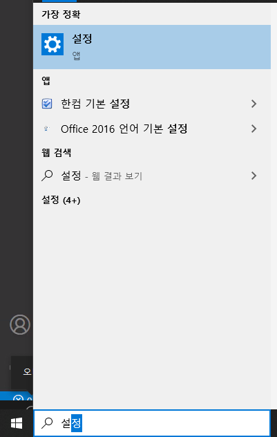 왼쪽 밑 검색란에 설정을 검색하여 들어가 준다.