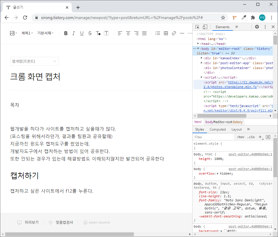 웹 개발을 하다가 사이트를 캡처하고 싶을 때가 많다.