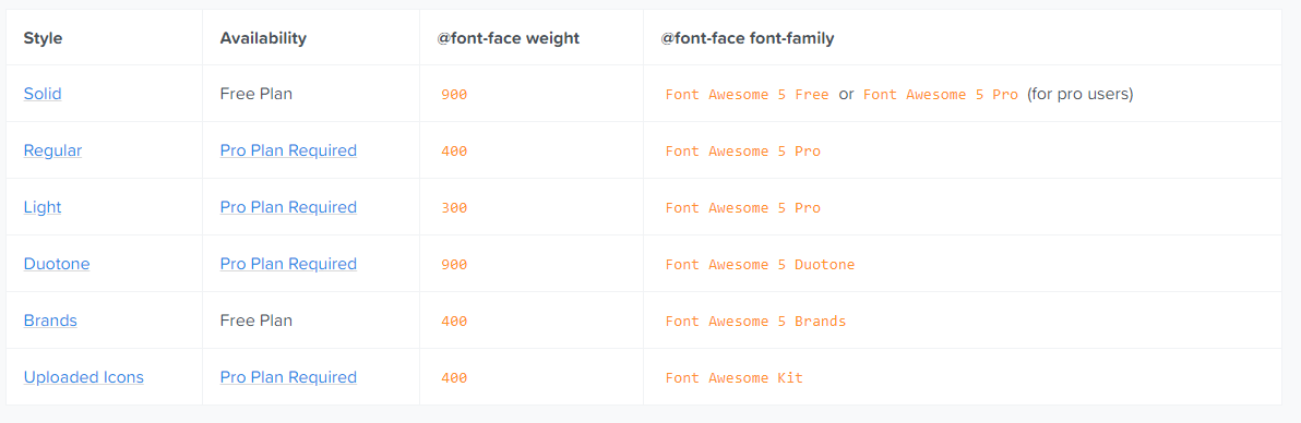 표를 보면 무료로 사용할 때 제한된 font-weight와,