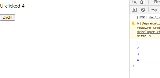 때문에 콘솔창을보면 초기값인 U clicked 0 도 포함되어있다.