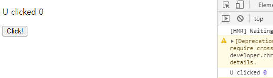 해당 코드를 실행시키면 U clicked 0 한 줄밖에 안 뜬다.